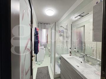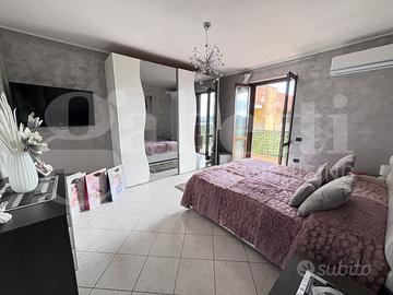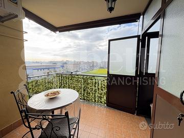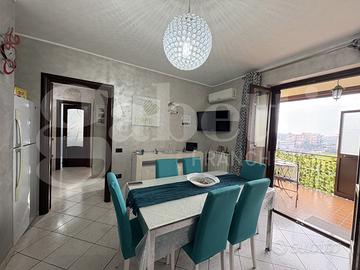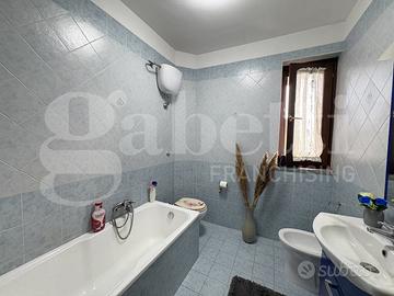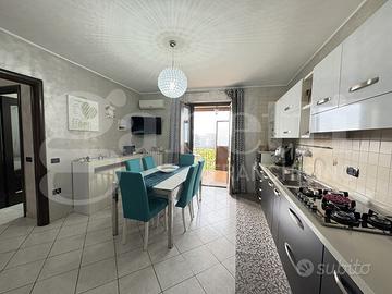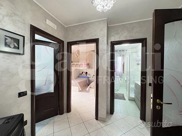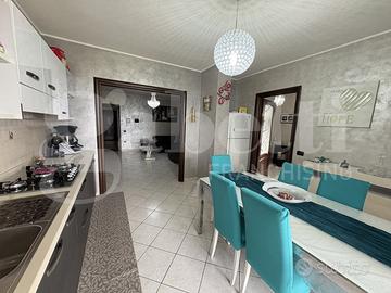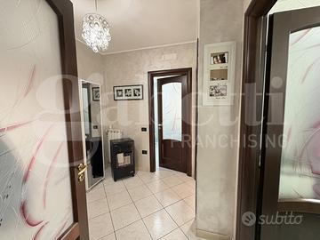 Soggiorno con cucina abitabile, terrazzino a livello con veranda e cucinino, disimpegno con accesso alle due camere da letto e due bagni (uno con vasca ed uno con doccia).