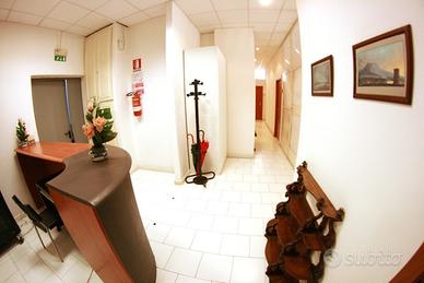 Perfetto per due/tre persone, il canone include arredi direzionali, scrivanie, armadi, cassettiere, internet fibra, cablaggio, Wi-Fi, linee telefoniche flat, centralino, pulizia spazi comuni, ricezione corrispondenza e corrieri, vigilanza, allarme, videosorveglianza h24, aree esterne e parcheggi.