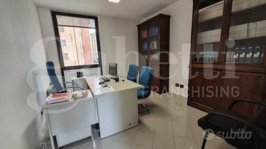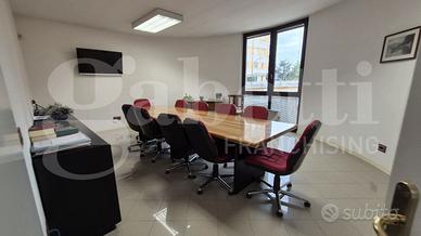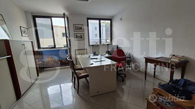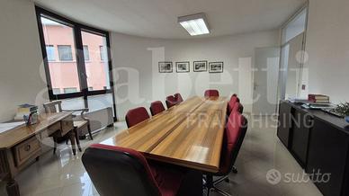 Sito in elegante contesto degli anni '90 servito da ascensore, ufficio di generose dimensioni con finiture ottimamente conservate, proposto completo di arredi e disponibile da gennaio 2026.