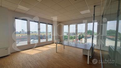 Vendesi ampio ufficio di 407mq in edifico direzionale a Prata di Pordenone. L'ufficio è composto da 5 locali divisi da pareti in vetro, grande disimpegno, ripostiglio e doppio WC con antibagno.