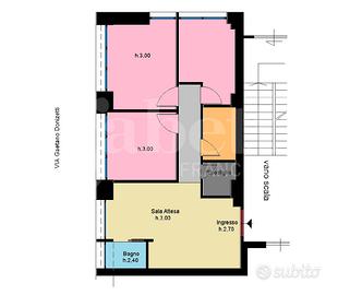 Dall'ingresso veniamo subito accolti da una sala d'attesa molto ampia, un bagno finestrato, un ripostiglio, e quattro stanze.