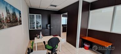 Ufficio signorile in palazzo di vetro di 100 mq. al 1 piano, servito con 2 ascensori e diviso in 3 uffici di 15/20 mq. l'uno, tramite interpareti in rovere scuro, con reception e divani. Possibilità di modifiche e di affittare gli uffici singolarmente. Se richiesto e' possibile avere un garage di 34 mq. al piano interrato Libero da Dicembre 2025 Chiamare per altre informazioni