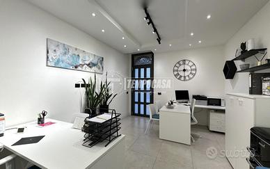 L'immobile si compone di un unico locale operativo oltre al bagno, con spazi ottimamente sfruttati e due postazioni di lavoro già presenti, ideali per professionisti che cercano un ambiente elegante, funzionale e rappresentativo.