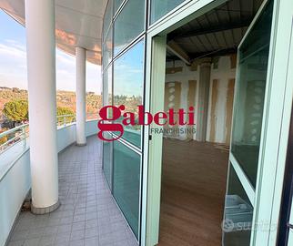 Le ampie vetrate perimetrali sono il vero fiore all'occhiello di questo spazio. Progettate per massimizzare l'ingresso della luce naturale, inondano gli ambienti di chiarezza, creando un'atmosfera di lavoro energizzante e produttiva. La vista panoramica che si estende all'orizzonte contribuisce a rendere l'ambiente ancora più stimolante e gradevole.