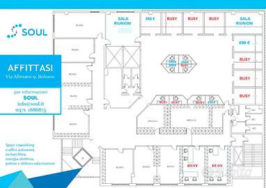 Si affittano in ampio coworking uffici e postazioni con tutti i servizi inclusi. Prezzi a partire da 300+iva per le postazioni e 550+iva per gli uffici.