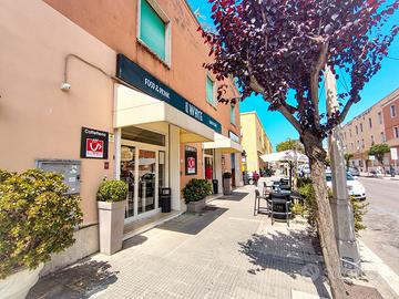 - lato pedonale che affaccia su un'ampia area con 30 tavolini all'aperto, completamente coperti da 4 grandi ombrelloni, ideale per accogliere la clientela in ogni stagione.