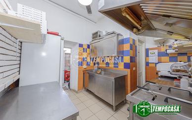 Laboratorio completo con forno pizza, griglia kebab, impastatrice, frigoriferi, bancone refrigerato, cappa aspirante a norma, ecc.