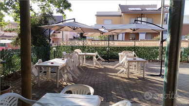 Completa di tutto, veranda esterna di 30 posti, chiudibile d'inverno, ulteriori 30 posti esterni utilizzabili d'estate.