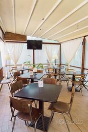 Il locale ha due ampie vetrine su strada principale che garantiscono la massima visibilità e molta luminosità, spazio per accogliere circa 40 posti a sedere tra l'interno e lo spazioso dehor coperto su suolo privato facente parte della locazione.