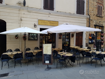 Vendesi Osteria Enoteca GinEria storica nel centro storico a Massa Marittima. Locale a faccia vista su due liveli di 125 metri quadri con 70 posti interni e 40 posti esterni con vista Cattedrale nella Piazza di Massa Marittima. L'Osteria non necessita di nessun tipo di lavori di ristrutturazione , la cucina è composta di 8 fuochi , doppio bollitore, doppio lavello, forno ventilato di ultima generazione e 4 frigoriferi , abbattitore e completa di tutti gli accessori. Arredamento tipico Toscano.