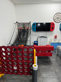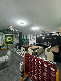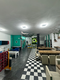 Il locale rende bene, ma essendo già proprietari di altre attività non riusciamo più a gestire il tutto. Biliardino, hair hockey elettronico, basket elettronico, PLAYSTATION 5, 2 tv 55 pollici smartTV, 2 nintendo, xbox, tavoli in legno 80x80 trasformabili in snack bar, sedie, frigo, lavandino con penisola per buffet, forno a microonde e forno normale. console/tavolo costruzioni lego, giochi di società, Bagno uomo,donna e disabili. Piccolo ripostiglio per il personale. Aria condizionata, tavolo torta vintage, molti allestimenti a disposizione per allestimenti tavolo torta. Spazio all'aperto e circondato. Non perdite di tempo. Grazie.