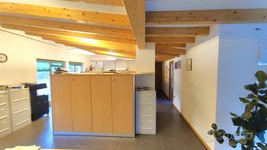 Vezzano, a 15 km da Trento e 25 da Arco e Riva del Garda, in zona di forte passaggio affacciata sulla strada statale, affittasi recente ufficio a secondo e ultimo piano di 120 mq lordi, con terrazzo, due balconi, garage e parcheggi.
