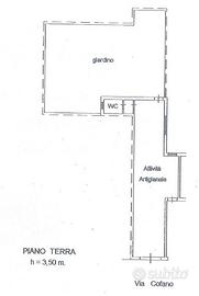 suddiviso in vano unico + anti w.c. e w.c. e ampio giardino sul retro, avente una apertura su strada.