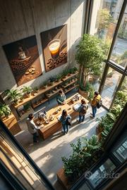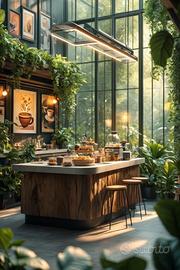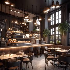 con un ampio bancone suddiviso nella zona caffetteria e beverage,
