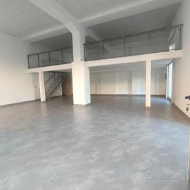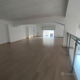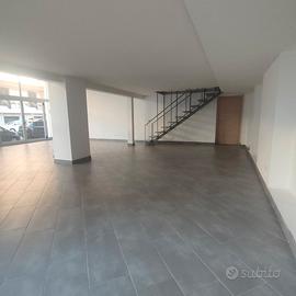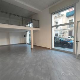 In zona centrale, ben servita, ad alto passaggio pedonale e carrabile, posizionato ad angolo tra due vie principali, proponiamo in affitto un negozio (C1 con Agibilità) con quattro vetrine, di cui due carrabili che garantiscono luminosità naturale e forte impatto espositivo, composto da unico ampio vano (MQ 110) più un soppalco (MQ. 40), oltre due bagni per complessivi mq. 150 c.a. Ottime condizioni e rifiniture. Buono per attività espositiva o di servizi,