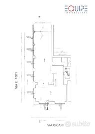 Il locale dispone di sette vetrine totali: due affacciate su Via Oriani e cinque su Via Toti, che assicurano grande visibilità su entrambi i fronti stradali.