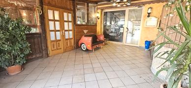 All'interno, una sala calda e accogliente, rivestita interamente in legno, offre altri 50 posti a sedere. Completano gli spazi un bancone bar, la cucina da ammodernare e il bagno.