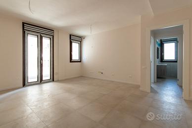 E' composto da due vani, disimpegno, bagno e due balconi. Classe energetica A4 ipeg 23,3990.