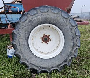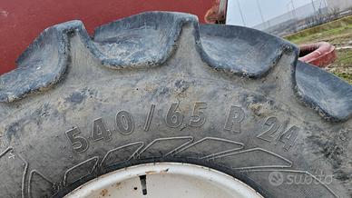 2 pneumatici agricoli montati su cerchio con flangia agricola universale 6 fori. Marca Continental, misura 540/65 R24. Gomme perfette. Battistrada 95 %. Indice di carico 140 (2500 Kg l'una). Ritiro dopo visione.