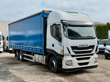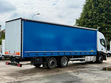 IVECO Stralis Hi-Way 460, anno 2018, 512.000 km circa, cambio automatico Cassone centinato alla francese con alza e abbassa, copri e scopri, porte posteriori lunghezza 9.60m Passo 6.050mm con terzo asse autosterzante intelligente con sollevamento e sterzatura in marcia avanti ed indietro, freni a disco, centraline livellamento. USATO GARANTITO 12 MESI