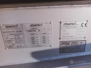 N.5 Semirimorchi CASSA TONDA MENCI Ribaltabile in Acciaio SA700R 30MC,TELAIO e CASSA IN ACCIAIO, SOSPENSIONI PNEUMATICHE CON VALVOLA DI REGOLAZIONE ALTEZZA MANUALE, PIEDINI JOST CON BASE CURVA OSCILLANTEIMPIANTO FRENI CON SISTEMA EBS 2S/2C CORRETTORE DI FRENATA, IMPIANTO ELETTRICO SECONDO LE NORMATIVE ADRSERBATOI ARIA IN ALLUMINIO, DISPOSITIVO PNEUMATICO DI SCARICO RAPIDO DELLE SOSPENSIONI, FRENO DI STAZIONAMENTO PNEUMATICO, CUNEI PORTACUNEIPROTEZIONI LATERALI, PARAFANGHI AVVOLGENTI IN PVC, VALVOLA DI SICUREZZQA CONTROLLO DISCESAIMPIANATO IDRAULICO PISTONE A 2 MANDATE CON SARACINESCA, SCALETTA ANTERIOREN. 02 FORI PER TRIANO SU CODE INCERNUERAMENTO BARRA PARAINCASTRO3° ASSE STERZANTE SAF CON FRENO A DISCO - 1° ASSE CON SOLLEVATORE AUTOMATICOCOPRISCOPRI "CRAMARO" CON ARCHI DA H 400mm - SEMIERMETICO TIPO C CON CARTER - TTELECOMANDO PER COPRI SCOPRI - GANCI A ROTELLE COLORE TELO GRIGIO RAL7038 CASSETTA INOX 400X300X450MANOMETRO DI PRESSIONEMOTOVIBRATORE ELETTRICO AZIONATO CON TELECOMANDO X C/SN. 06 PNEUS 385/65 N. 06 CERCHI IN ACCIAO SISTEMA DI FRENATURA EBS CON RSP "ANTIRIBATAMNETO"FARO SUPPLEMENTARE POSTERIORE A LEDVERNICIATURA CASSA 2 COLORIPARASPRUZZI PICCOLI RIPIEGHEVOLIN. Telaio 28959: A FerraraLIBRETTO USO E MANUTENZIONEDOCUMENTI MCTC