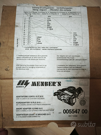 Adattatore corto professionale marca Menber's (Art. 005547 00), indispensabile per collegare motrici moderne con presa a 15 pin a rimorchi/semirimorchi con il classico sistema a due cavi (7 poli Nero e 7 poli Bianco).