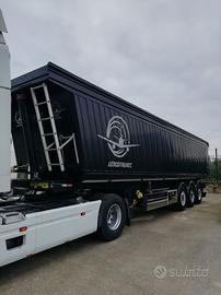 cassone in ferro ribaltabile posteriore, pistone anteriore, due porte posteriori, metri cubi 60 circa, primo asse sollevabile, terzo asse sollevabile e sterzante.