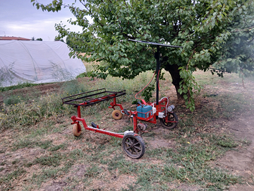 agevolatrice elettrica leggera per raccolta fragole ortaggi asparagi ecc.. dotata di 2 i motori da 250 w per ruota . Marcia avanti e retro per le manovre . dorata di pannello solare per ricarica batterie