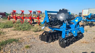 Agripol Titanum 250, erpice a dischi portato da 2.5 m di larghezza di lavoro. Dotato di rullo ad anelli a V e deflettori laterali ultimo tipo chiudi solco. Mozzi a tenuta SKF. Dischi di ø 560 mm.