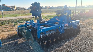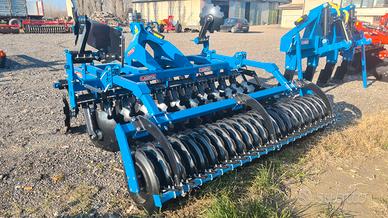 Agripol Titanum 300, erpice a dischi portato da 3 m di larghezza di lavoro. Dotato di rullo packer ad anelli taglienti di ø 600 mm e deflettori laterali ultimo tipo chiudi solco. Mozzi a tenuta SKF. Dischi di ø 560 mm.