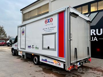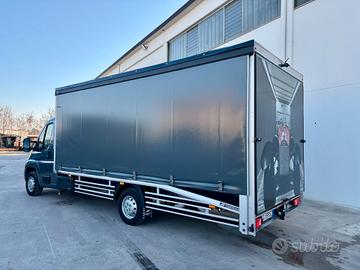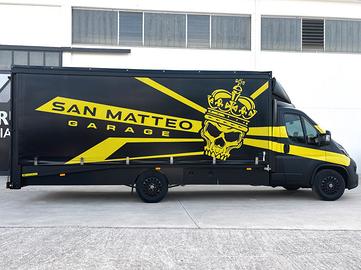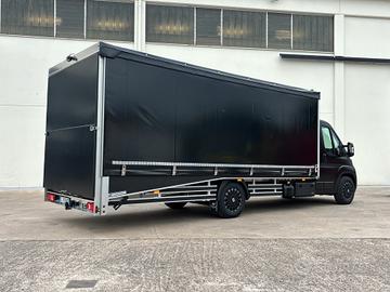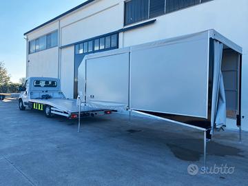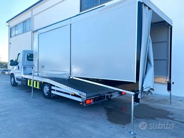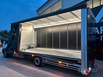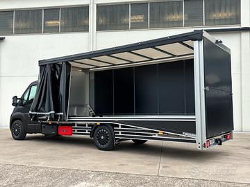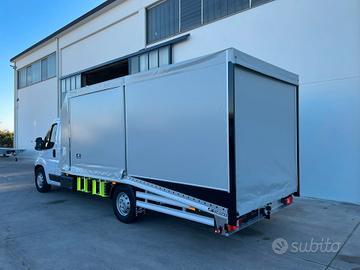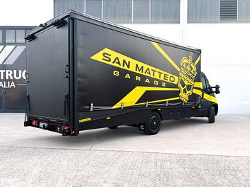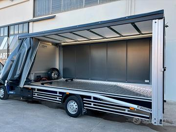 Partendo dal nostro pianale Le Mans realizziamo una struttura tutta in alluminio dove il cliente può opzionare per una copertura telonata con i laterali scorrevoli o rigida con pannelli lisci su veicoli con masse superiori ai 3500 KG