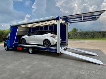 Per il trasporto di prototipi o supercar realizziamo il portale posteriore con un' unica rampa in alluminio riducendo l'angolo di attacco per la salita e discesa