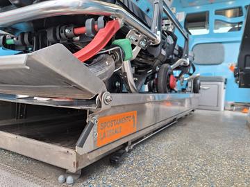 PARTICOLARITÁ: Supporto barella traslabile ad un vano per alloggiamento la tavola spinale. Barella Spencer Cross.
