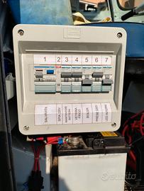 o Impianto elettrico per connessione 220 V per alimentazione frigorifero, prese 220 V, boiler, led illuminazione e manutentore batteria.