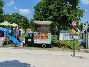 Vendo ape 400 diesel anno 2013, pochi km adibita a gelateria con frigo a pozzetto 8 gusti più 6 di scorta..Fornisco anche banco con predisposizione per friggitrice, piastra e vetrina frigo, facilmente sostituibile ( in due ore ) per poterla usare anche in altre stagioni...Viene consegnata tinteggiata del colore che preferite...