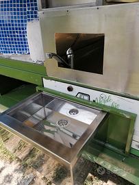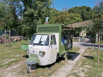 Veicolo street food per pizzeria con forno a legna. Il mezzo era stato allestito nel 2018 e, mettendoci noi l'ape il forno e il condipizza, avevamo speso ? 18.431,20. Tutto dimostrabile con fatture.