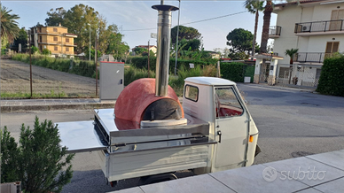 Vendo per inutilizzo ape pizza 50cc, motore rifatto, gommata nuova forno a legna ( con possibilità di trasformarla a gas), banchi in acciaio inox in entrambi i lati, stereo bluetooth con luci led.