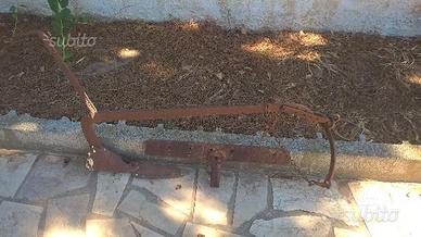 Aratro Antico in ferro battuto da traino per cavallo o asino, completo di coltello. Spese di spedizione a carico dell'acquirente.
