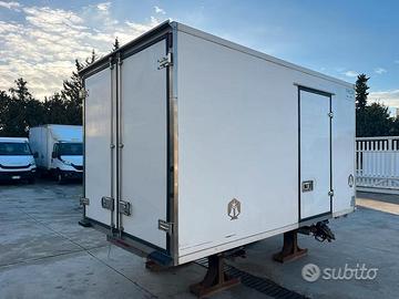 Cella Isotermica dim mt 3.65 x 2.05 x h 2.0classe FRCXCompleta di ATP e certificato di provenienza rilasciato da MCTC, valido per il rimontaggio e collaudo su nuovo autocarro.Cella smontata da Iveco 35C15 passo 3.450Completa di parafanghi, paracicli, spoiler, compressorecod. 003-121