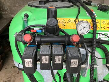 Caratteristiche: certificazione ENAMA; torretta per una migliore distribuzione dell'aria sulla chioma; comandi elettrici in cabina (apertura totale; DX+SX; regolazione pressione); pompa a membrane Comet IDS 960 con testate in ottone (optional top); lavacircuito indipendente (si può lavare il circuito anche con botte piena senza diluire la miscela); doppio manometro (su macchina e su comandi in cabina); telaio e convogliatore zincati; getti doppi in ottone con antigoccia a membrana con ugelli Albuz e piastrina in ceramica; ventola da 840 con due velocità; ugello interno lavacisterna; fungo miscelazione prodotti sul cestello; indicatore livello esterno alla botte; cisterna lavamano; paraurti posteriore con fari a LED.