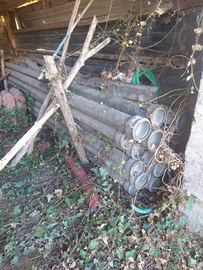 In vendita: - 25 tubi da irrigazione diametro 12 cm in ferro zincato con pompa per pescaggio acqua e 4 getti marca Carnevali - rimorchio quattro ruote