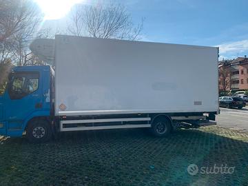 Autocarro DAF FL 230 ptt 115 ql.i con cella frigo FRC e paratia interne con 400000 km con sponda idraulica retrattile dohllandia da 20qli , gruppo frigo autonomo Thermo king t 800. Sempre tagliandi regolari da officina DAF. Meccanicamente senza nessun problema, esteticamente alcuni punti della cella da sistemare.