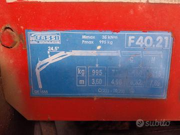 VENDESI EUROCARGO ANNO 1996 ALIMENTAZ. GASOLIO -LUNGHEZZA 7.360 -LARGHEZZA 2.350 -PORTATA 3620KG VEICOLO CON CASSONE E GRU FASSI F40.21 DISTANZA ASSE ANTERIORE CENTRO COLONNA GRU 0.90M DOTATO DI RAMPE POSTERIORI DISPONIBILE QUALSIASI PROVA