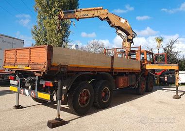 Autocarro in discrete condizioni generali 4 assi 8x2 Cambio manuale Sospensioni a balestra Motore - IVECO 8061 6 CILINDRI Anno: 1971 Portata: 7.500 Kg Peso a pieno carico: 22.000 Kg Potenza netta: 220 CV - 163 Kw Pneumatici al 60% GRU mod. PM 34003 Anno: 1980 Portata max: 17.000 Kg Portata a 9,97 mt: 3100 Kg
