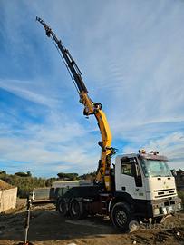 Iveco Trakker 440 6x4 3 assi, differenziale, autoarticolato, gru copma 500 del 2003, 6 sfili + 4 jib, portata in punta 8 ql, a 4,70 mt 100ql, verricello, 2 prolunghe manuali, sbraccio 31 mt, mezzo molto corto che permette di accedere in qualsiasi spazio.