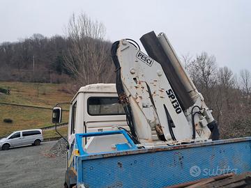 Ottime condizioni, Gommato al 80%, Motore rifatto completamente dimostrabile con Km 5000 , Rampe in alluminio nuove, Gru Pesci SP 130 ql 70 alla massima estensione ql 15, Riallestito con pianale trasporto mezzi e gru anno 1998
