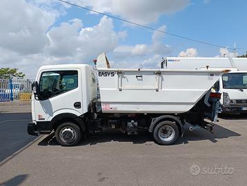 Nissan Cabstar NT 400, patente B, anno 2019, euro 6, Km 51200, cambio manuale, vasca ribaltabile per raccolta differenziata/rifiuti , capacità 5 mc, volta contenitori Pettine/DIN, piedi stabilizzatori posteriori. Macchina ricondizionata in eccellenti condizioni.