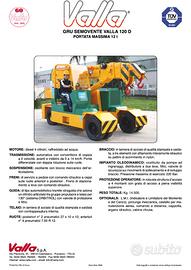 VALLA 120 D Anno 2007 Capacità 12 ton Altezza massima 10 m Ore 70 PER ULTERIORI INFORMAZIONI SOLO CONTATTO TELEFONICO AL 335.8010509