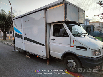 Vendo automarket Iveco Turbo Daily (pat C richiesta), 415000 km, motore originale. attrezzato in acciaio con scalinata e supporti per appenderia (fino a 15 barre), apertura portellone idraulica a 6 o 8 mt