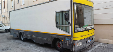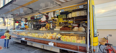 Vendesi furgone integrale Minonzio base Iveco Anno 94 allestito internamente ad uso negozio lunghezza metri 8.80 completo di banco esposizione , celle refrigerate e frigo murali per affettati, lavello e generatore. Automezzo tutt'ora in uso come da foto revisionato e collaudato annualmente. Disponibilità dal mese di dicembre a Rimini.